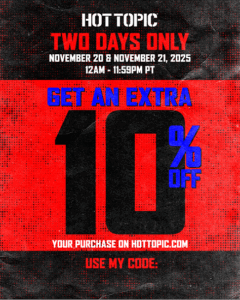 Every creator who joins the program receives a native Hot Topic storefront, where they can curate product collections and share their favorite picks. Creators are excited to have a dedicated place to showcase their style within the Hot Topic site, rather than relying on one-off links. To further activate these storefronts, Hot Topic began running 24–48 hour flash promotions with unique creator codes. These campaigns add urgency and momentum, giving creators an additional reason to spotlight their storefronts during key moments while keeping their curated collections at the center of the experience.
